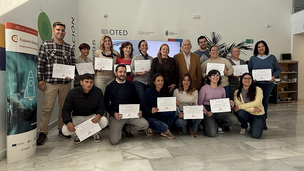 En paralelo, la Cámara mantuvo formación vinculada a emprendimiento, innovación y competencias para los negocios: el Programa España Emprende sumó 15 alumnos que finalizaron el curso presencial de 90 horas “Inglés Turístico y Comercial” en Rota. Dentro del mismo marco de apoyo al emprendimiento, se celebró la jornada “Emprende tu Futuro” con 27 asistentes y el taller “Posiciona en Google: Emprende y llega a tus clientes potenciales” con 44 participantes.